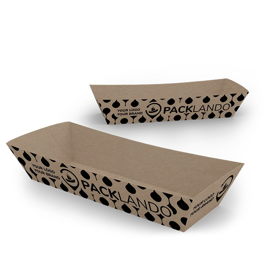 Mit der Hotdogschale servieren Sie Hotdogs sauber und griffbereit, auch bei hohem Tempo am Tresen. Die Form hält Brötchen und Inhalt gut zusammen und erleichtert das Essen unterwegs. Ideal für Imbiss, Foodtruck, Stadionverkauf und Catering. Für ein einheitliches Branding ist die Hotdogschale individuell gestaltbar und bedruckbar, zum Beispiel mit Logo oder Aktionsmotiv.